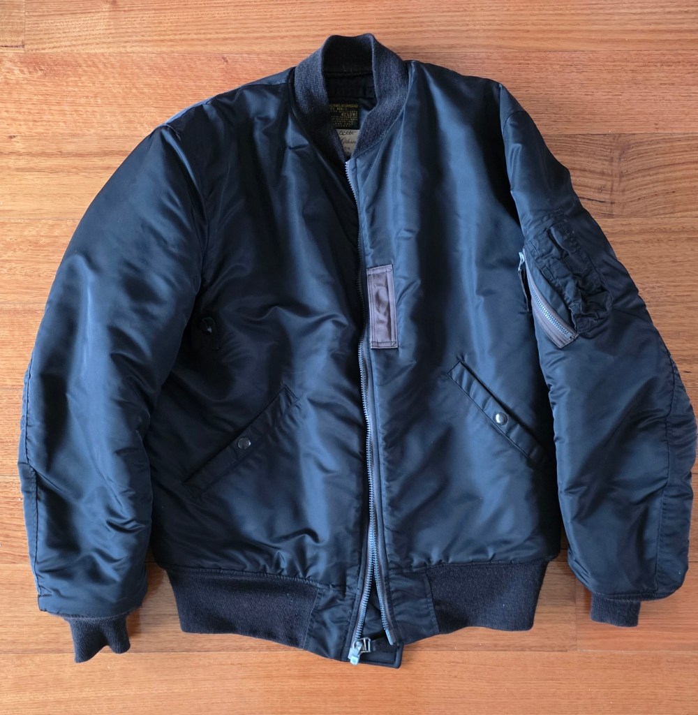 Well, maybe, but what is curious about it is the fact that until 2004, the black MA-1 flight jacket, of which (now) my jacket was a reproduction, did not exist.