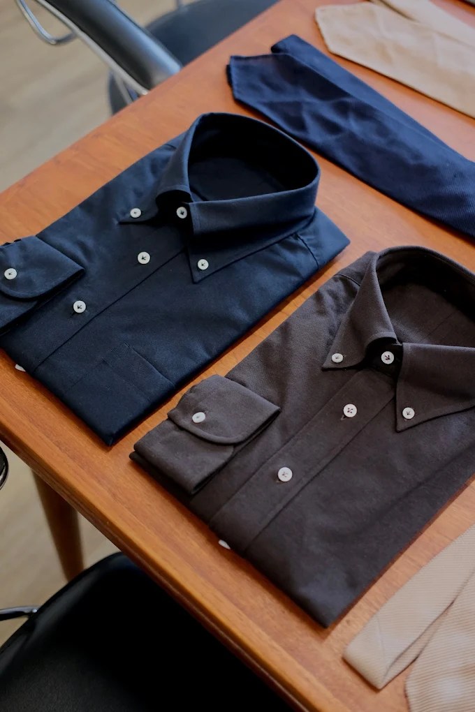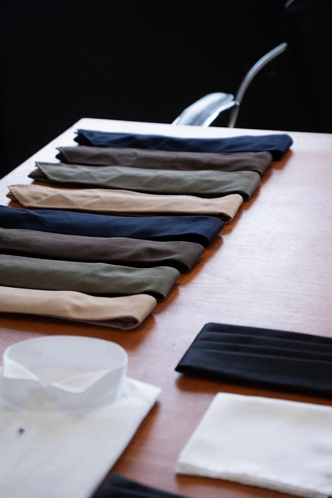 Then you stand before a massive mirror, trying on blank trousers and shirts, their different sizes zeroing in on your shape. The talk shifts to fashioning drape and breaks and collar and cuff circumference to accommodate a watch. Steve studies the ensemble with a practiced, all-encompassing eye, pinning here and tugging straight, a sculptor drawing the idea from the unformed stone. And you, the stone, see it happening in real time. The way the line of your back appears. How your legs are smoothed and elongated. The word here is “refinement”. After this fitting, the last details are hammered out and entered into your notes.